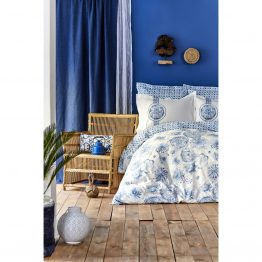 Постельное белье Karaca Home ранфорс Felinda mavi голубой евро
