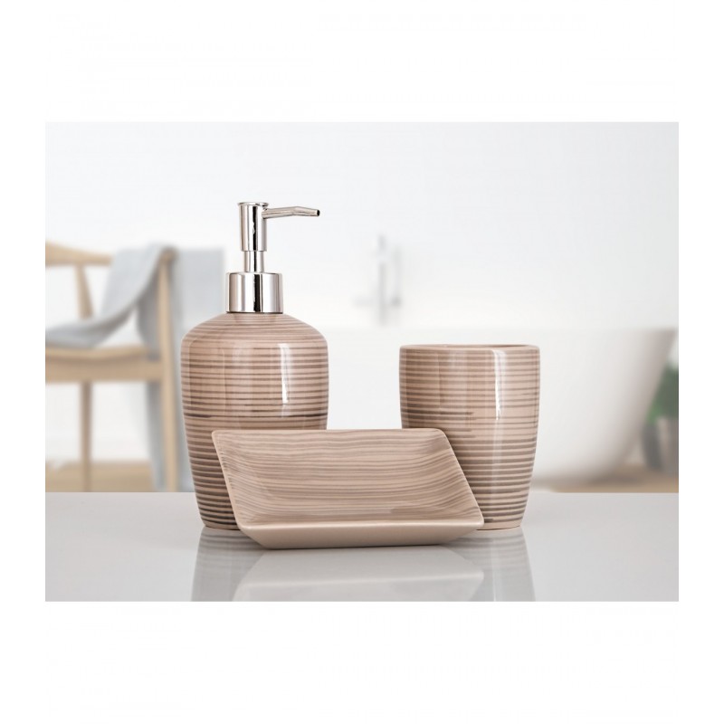 Состав: полирезин (устойчив к падению) Комплектация: – дозатор для мыла – мыльница – стакан для зубных щеток