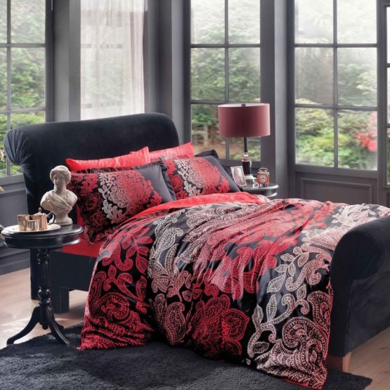 Постельное белье Tac сатин Delux Valencia siyah черный евро