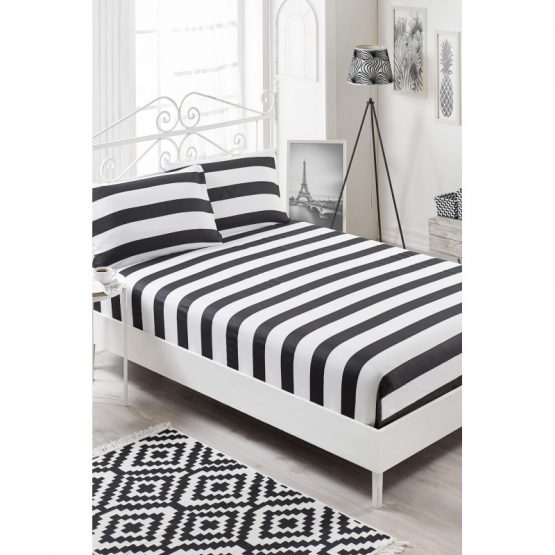 Простынь на резинке с наволочками Eponj Home B&W – Line 160*200